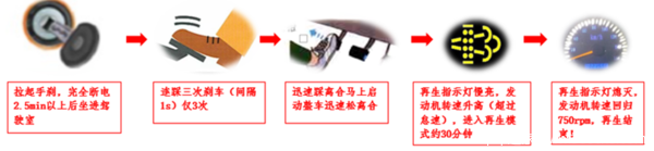 严禁在加油站及具有危险化学物品、粉尘、易燃易爆物品的场所进行原地再生。原地再生过程中,不允许驾驶员进行其他操作,包括操作离合器,刹车,油门踏板,空调,多状态开关等。手动原地DPF 再生方法如下: