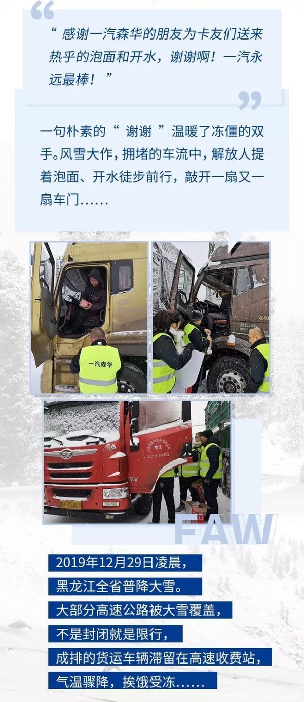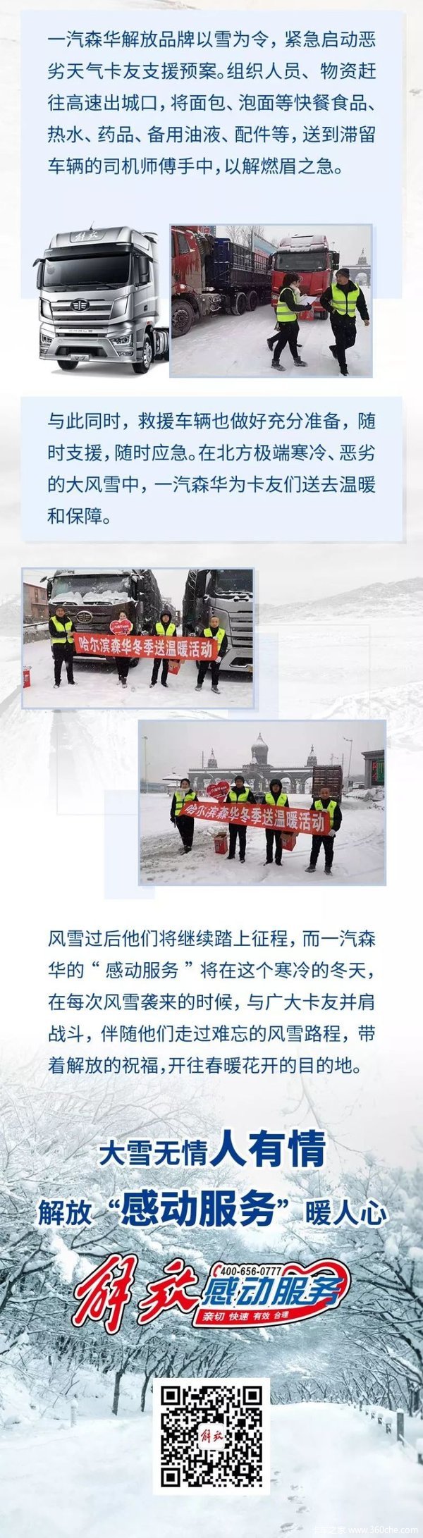 当前位置: 卡车之家 >卡车经销商 > 石家庄市正洋汽车 > 促销新闻 > 石家庄正洋——风雪起,救援到——解放“感动服务”温暖卡友心