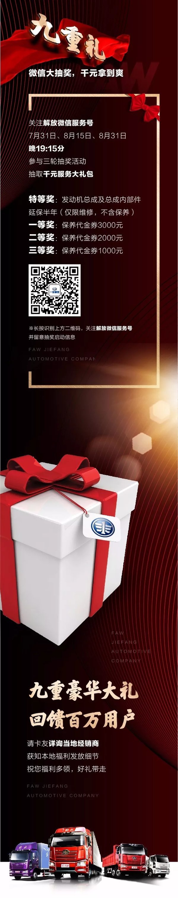 9、微信抽大奖:关注解放微信服务号,抽千元服务大礼包,7月31日、8月15日、8月31日晚19:15分准时抽奖