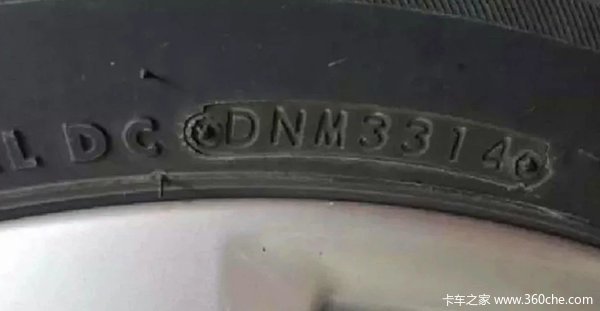 轮胎整天裸露在外,风吹雨打很辛苦的,人走路多了脚都会起泡,轮胎跑多了也会老化,但轮胎却不能像人一样去做个“大保健”,所以我们很有必要知道,我们的轮胎的年龄,在轮胎上找到一个四位数字,比如下面图片的3314
