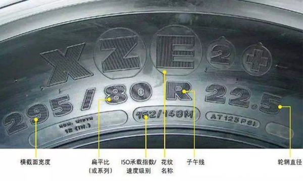 这个R,涉及轮胎内部结构,表示“子午线轮胎”就不展开细说了,一般车辆用的都是R轮第三个数字,22.5,这个是最多人看得懂的参数了,就是我们说的轮毂尺寸,不是整个轮胎的尺寸哦很多人想要换轮胎,其实就只想着换个。