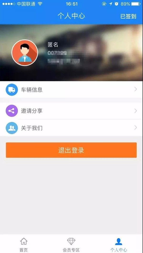 在“个人中心”添加车辆信息后,