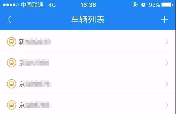 在车辆列表界面,点击右上角“+”,