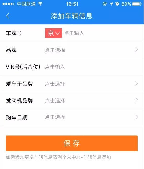 填写车辆信息,点击“保存”