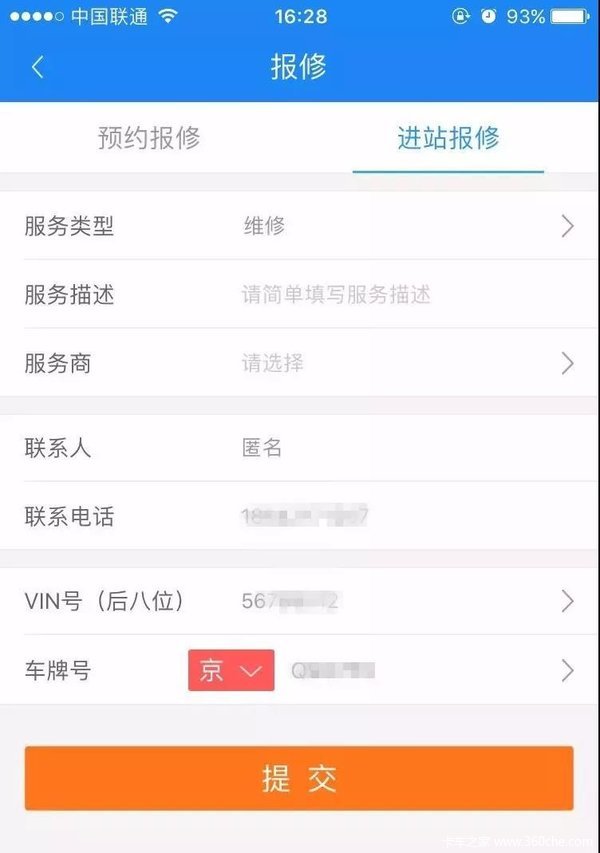 选择服务商,通过VIN或车牌号进入车辆列表,