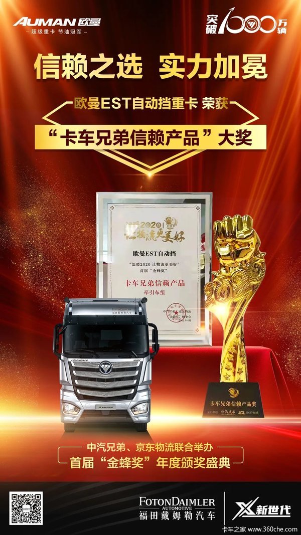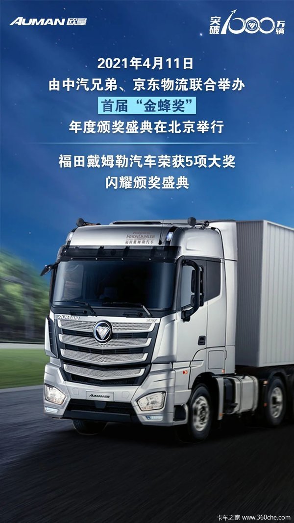 盛典现场,福田戴姆勒汽车摘得“创富先蜂”大奖、“AMT先蜂”大奖、“道路安全先蜂”大奖、“京驿货车优秀合作商”大奖;福田戴姆勒汽车欧曼EST自动挡荣获“卡车兄弟信赖产品”大奖。