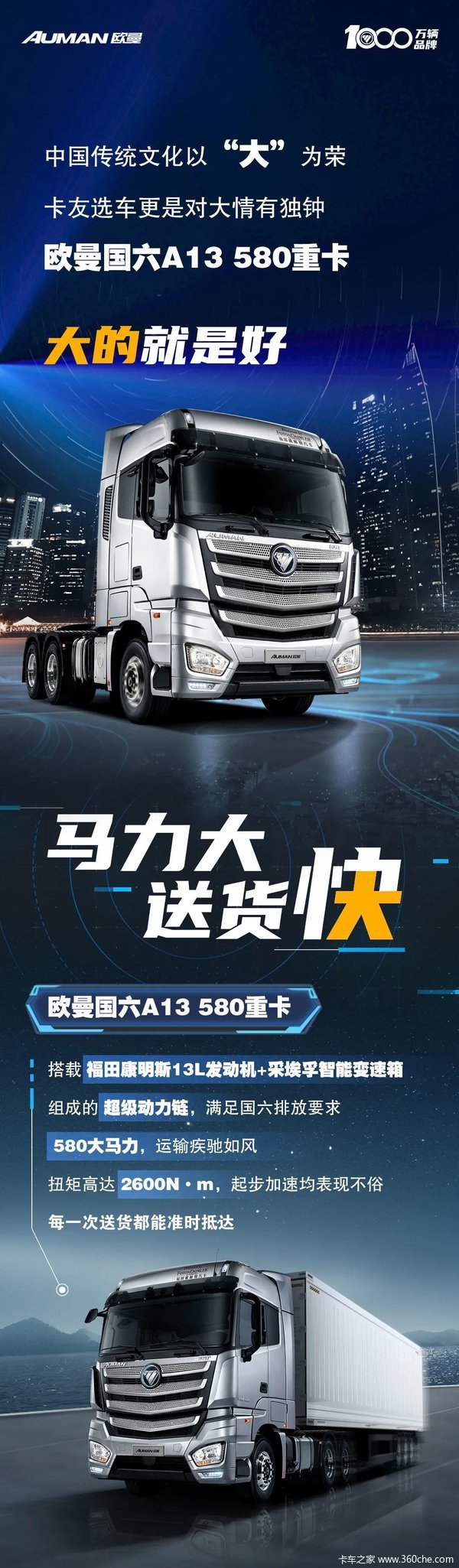 当前位置: 卡车之家 >卡车经销商 > 安徽安瑞畅达汽车销售服务 > 促销新闻 > 【大】有赚头,【大】就是好! 欧曼国六A13 580重卡