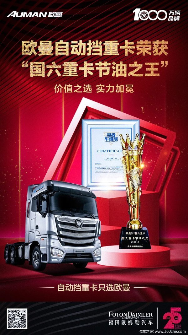 洞见趋势,方能顺势谋变。欧曼EST国六自动挡重卡凭借专属定制的动力系统以及轻量化方面的持续突破,在实现高效节油的同时,更是不断提高用户运营效率,可以说是国六用户在当前油价高涨,运费低迷下更好选择。所以,欧曼EST国六自动挡重卡获得“2021国六重卡节油之王”称号可谓当之无愧。
