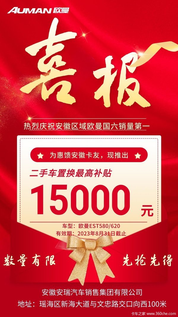 当前位置: 卡车之家 >卡车经销商 > 安徽安瑞畅达汽车销售服务 > 促销新闻 > 二手车置换最高享1.5万,名额有限、先到先得