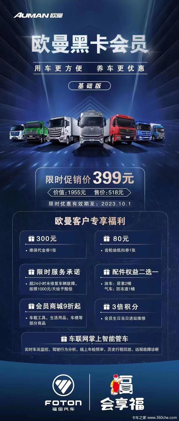 当前位置: 卡车之家 >卡车经销商 > 安徽安瑞畅达汽车销售服务 > 促销新闻 > 黑卡会员推广,最低只要399,拥有它,做欧曼VIP