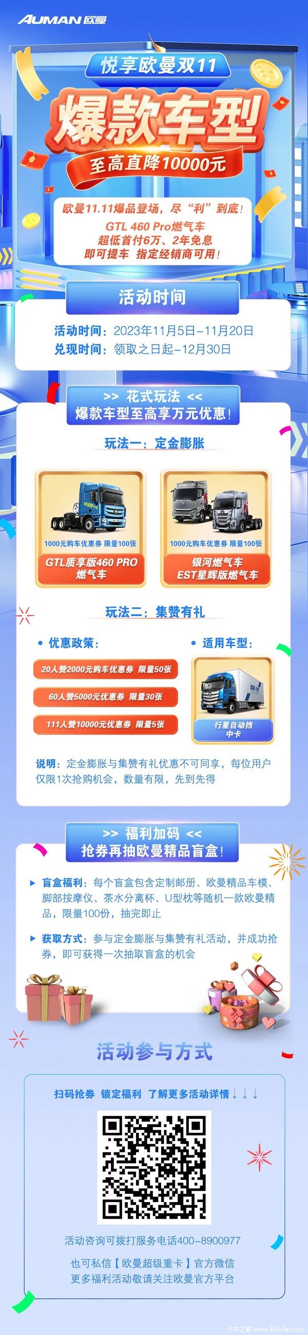 当前位置: 卡车之家 >卡车经销商 > 安徽安瑞畅达汽车销售服务 > 促销新闻 > 悦享欧曼双11丨爆款车型,至高直降10000元!