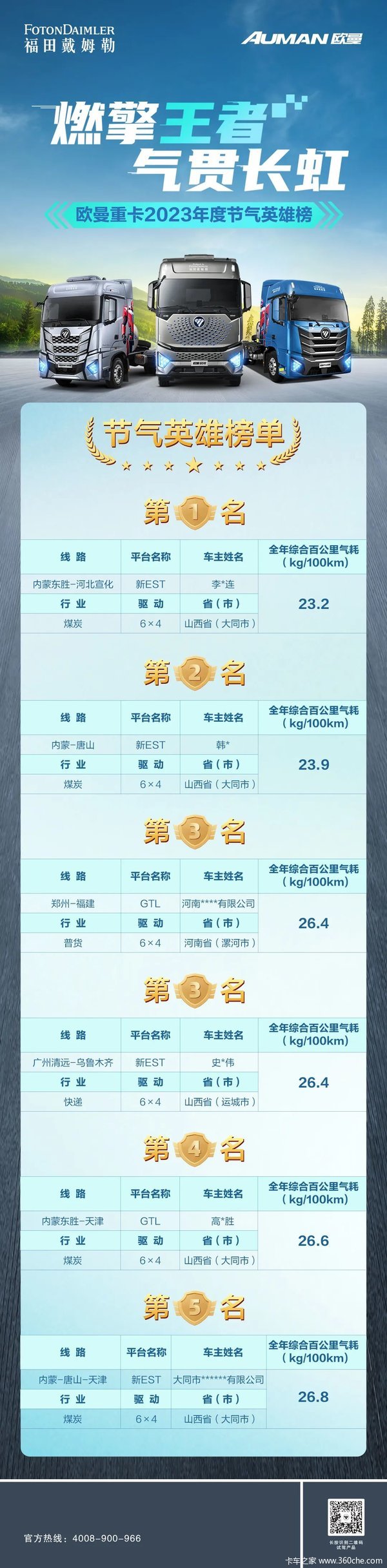 当前位置: 卡车之家 >卡车经销商 > 安徽安瑞畅达汽车销售服务 > 促销新闻 > 燃擎王者 气贯长虹 欧曼重卡2023年度节气英雄榜榜单揭晓!