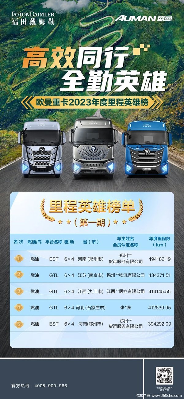 当前位置: 卡车之家 >卡车经销商 > 安徽安瑞畅达汽车销售服务 > 促销新闻 > 高效同行 全勤英雄 欧曼重卡2023年度里程英雄榜正式公布!