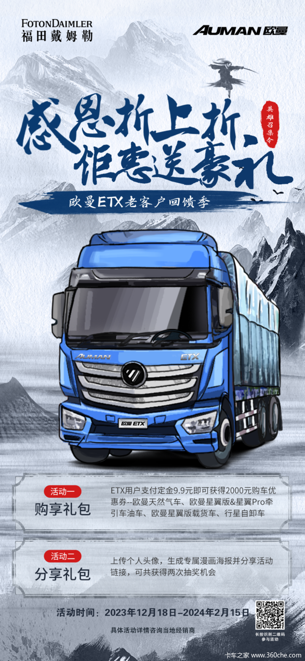 当前位置: 卡车之家 >卡车经销商 > 安徽安瑞畅达汽车销售服务 > 促销新闻 > 电商大促丨感恩折上折,钜惠送豪礼,欧曼ETX老客户回馈季!