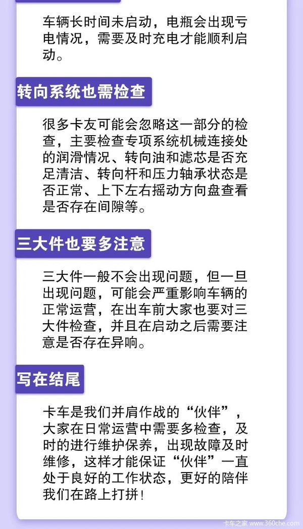 当前位置: 卡车之家 >卡车经销商 > 安徽安瑞畅达汽车销售服务 > 促销新闻 > 【卡车知识小课堂】行车前,必须要做的各项检查