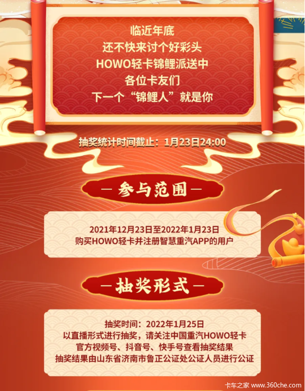 当前位置: 卡车之家 >卡车经销商 > 河南沃达汽车销售(重汽HOWO轻卡) > 促销新闻 > 还有6天!专属你的HOWO锦鲤来了!