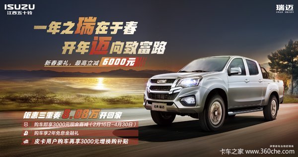 皮卡用户购车再享3000元增换购补贴,现在购买经典瑞迈