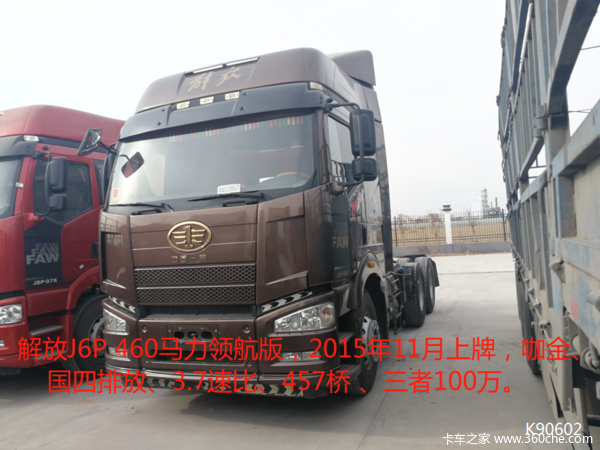 解放J6P 460马力领航版,2015年11月上牌,咖金、国四排放、3.7速比、457桥 、三者100万。