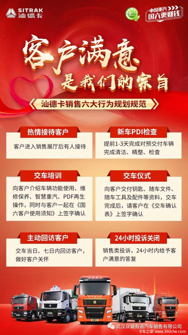 当前位置: 卡车之家 >卡车经销商 > 武汉众诚有道汽车销售 > 促销新闻 > 客户满意是我们的宗旨?? ?汕德卡让您用的放心?
