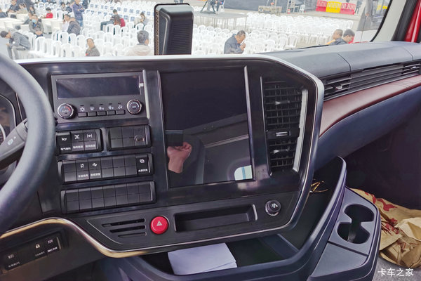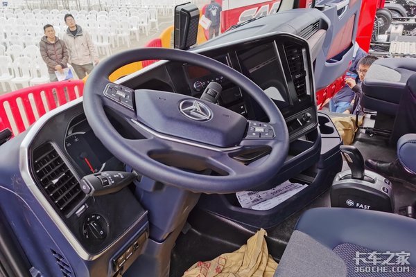 半包围驾驶员设计的中控台功能非常齐全,大尺寸的多媒体大屏看起来就非常有牌面,堪比一台ipad的多媒体大屏在业内基本上没有什么对手。各项功能的按键排列规整,是强迫症的福音,并且各个按键的功能一目了然,即使是新手司机,也能很好的和卡车进行交互。