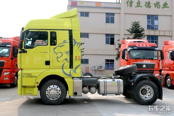 作为一辆4X2牵引车,该车还采用了长轴距设计,在保证整车长度不变的情况下,货厢可以往前前探更深,以此获得更大的装载空间。