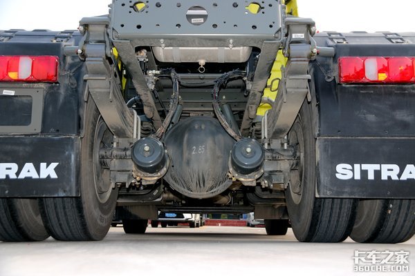 这台汕德卡G7 4x2装配德国曼13吨鼓式单后桥,采用斯凯孚原装进口免维护轴承设计,速比为2.85,悬架采用前3后5式少片簧设计,再配备规格为12R22.5的真空胎,确保车辆的整体性能得到有效发挥。
