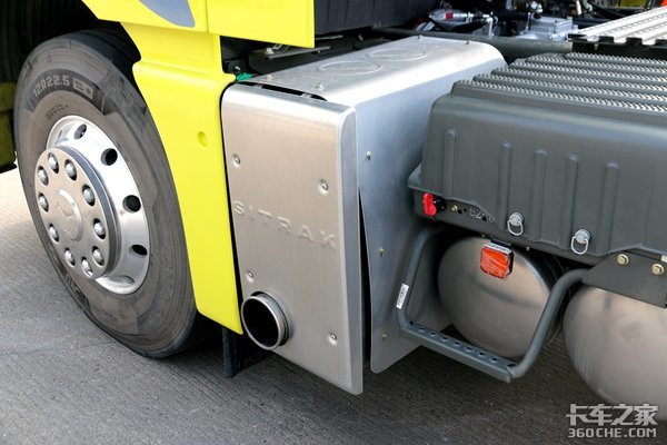 重汽为这款4x2牵引车装配了600 400L的双铝合金油箱,使其拥有超长的续航里程,同时为适应寒冷地区的启动条件其副油箱还可加注低标号燃油。