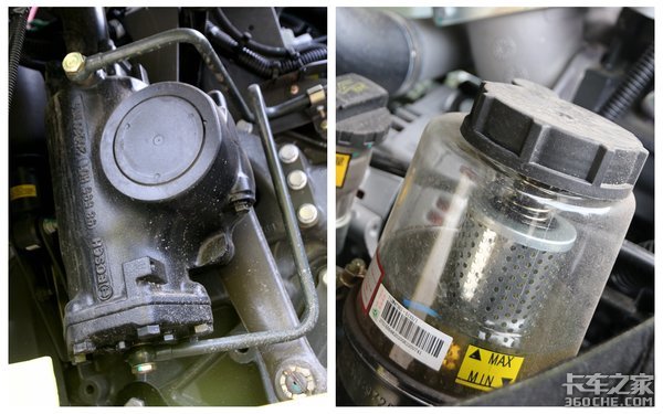而转向机则使用了博世的电子油泵方向机,该系统还设计有一个过滤杯,能够确保转向系统稳定有效的工作。