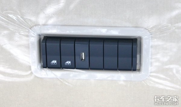 驾驶室后墙处依旧设计了主副驾玻璃的升降按钮,以及一个USB接口,躺在卧铺上就能对车窗进行升降换气控制以及对电子产品进行充电,这点很是贴心。