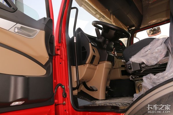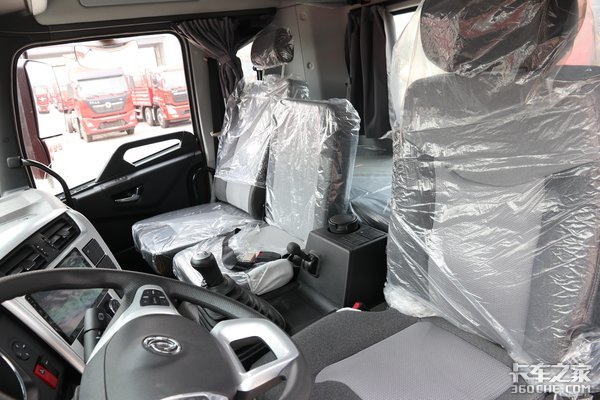 内饰方面,和汕德卡G5一样,都是采用高顶双卧的驾驶室,配置有中控锁、后视镜电动调节及电加热、多功能方向盘、中控屏、360度影像环视、气囊减震座椅等。