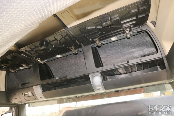 储物空间方面,该车在顶部设置了三个可开启的大储物箱,以及下方两个半封闭式储物盒,方便驾乘人员放置被褥、厚衣物、票据等等物品。