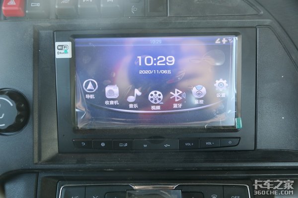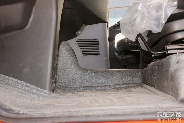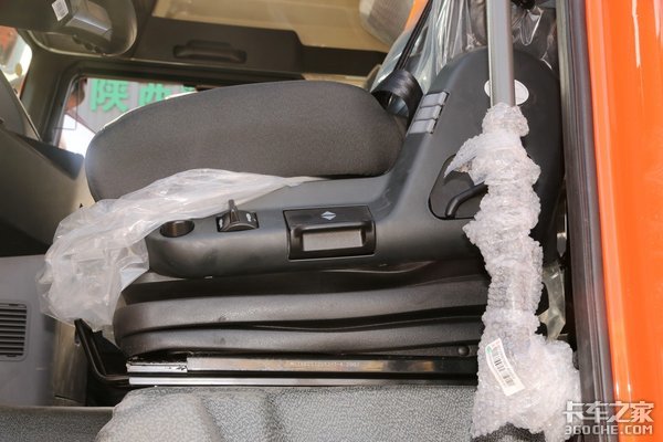该车驾驶室悬架上采用主流水平的气囊式四点悬浮结构,搭配气囊悬浮式充气座椅,能够有效过滤和减缓行驶在颠簸路段带来的不适感。整个座椅面料下的填充物非常厚实,就算是长时间的接触也能减少疲劳。