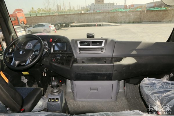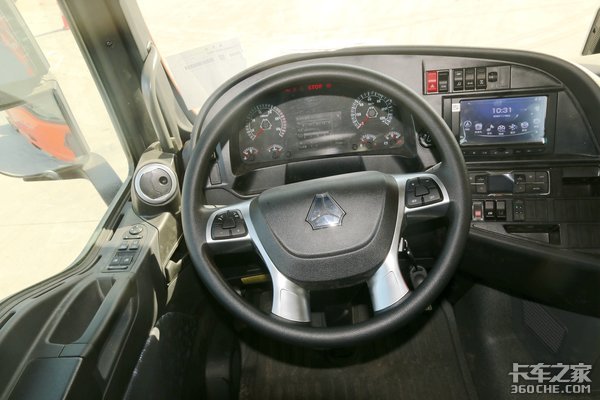 重汽品牌惯用的四幅式方向盘使用银色面板进行装饰,提升了视觉效果。两侧集成的多功能按键也极大方便了在驾驶过程中对多媒体等设备的操作,有利于将驾驶员的视线集中在道路中去,提高行驶安全。
