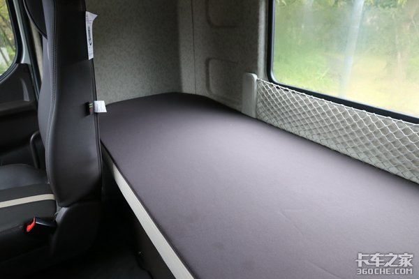 我们再看内饰,这款东风天龙旗舰KX采用高顶双卧平地板驾驶室,整体的内饰空间还是很大的。而且为了驾驶时的舒适性,气囊减震座椅、四点悬置的配置让车行驶在颠簸路段也无所畏惧。