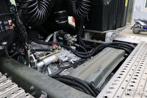 传动部分匹配的是重汽12挡变速箱,主箱双副轴全斜齿结构,稳定性更好、噪音更小,有需求的可以加装液力缓速器。
