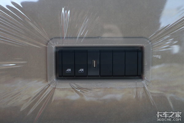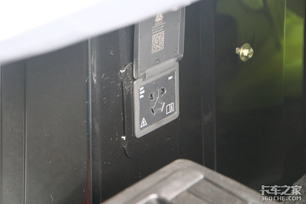 牵引车气刹和挂车气刹均设置在变速箱档杆后方,这个区域不仅有一些储物空间,同时还配备了一个USB的充电口和一个220V1000W的三孔插座。USB可以用于普通的手机充电,而1000W的三孔插座可以支持电饭煲等功率较大的电器,让卡友们随时随地能吃上一口热饭。