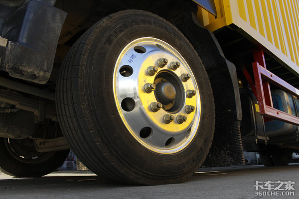 装载6条型号为TR680的三角轮胎,规格为295/60R22.5。这款轮胎采用特殊花纹设计,具有良好的操控性能,同时具有优秀的高耐磨以及抗偏磨性能。