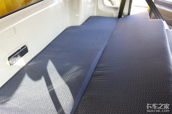 为保证较大的装载空间,实拍车型采用了窄卧铺设计,放倒主副座椅后,打开卧铺能够形成一个宽度出色的卧铺位,身材壮硕的驾驶员也能够得到充分的休息,这对于长途行车的卡友来说相当友好。