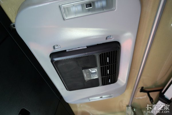 车辆天花板处配备了一个驻车空调。使用车辆电源供电,并带有低电量断电保护,可在车辆熄火状态下为提供5小时左右的工作时间。像在到达目的地等待卸货的过程中,驾乘人员就可以在不管炎热还是寒冷的天气情况下,在车内有舒适的休息空间。