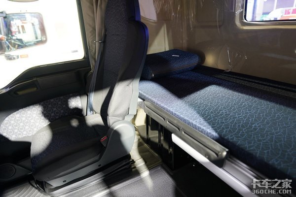 座椅后方配备上下两个床铺,并且带有折叠式的防滚支架,并设计了一些放手机或小物品的储物空间,细节之处考虑很周到。并且配备一个相同设计的枕头,床铺的宽度有保障,就算体型较魁梧的人员也能很轻松躺下。