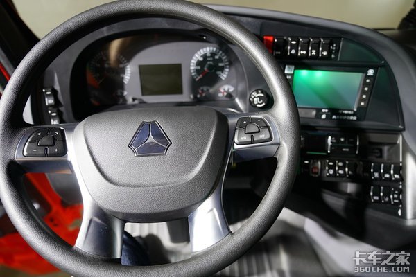重汽品牌惯用的四幅式方向盘使用银色面板进行装饰,提升了视觉效果。两侧集成的多功能按键也极大方便了在驾驶过程中对多媒体等设备的操作,有利于将驾驶员的视线集中在道路中去,提高行驶安全。