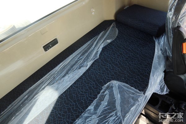 双卧驾驶室,通过测量,下卧铺最宽处达到了80cm,卧铺垫子非常柔软,而且还赠送同款系的枕头,睡觉时再也不怕腰酸背痛。另外在卧铺后窗下面,有个黑色的控制面板,它可以实现USB充电以及主、副驾两边的车窗开启和关闭。