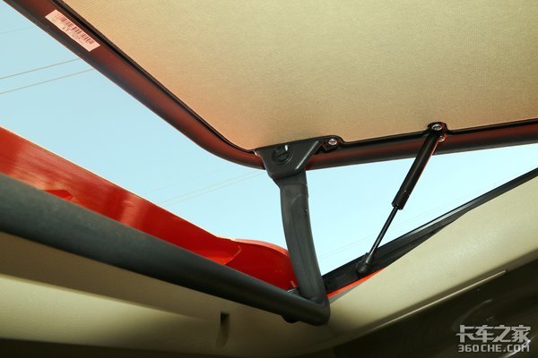 这台车也配有天窗,我们可以发现,天窗的开合度大概在30度左右,支撑的零件看上去也比较放心,这样的设计比较符合空气流通的特性,能够加快驾驶室进行换气,也可以拥有更好的驾乘体验。