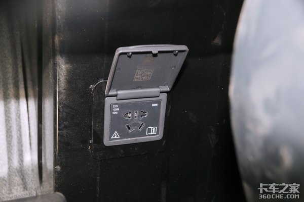 卧铺下方,中间看上去比较空旷,这就方便卡友进行一些DIY设计,为什么这样说呢,因为右边,也就是主驾驶椅后边,有一个220V 1000W的插座,无论你是想加装微波炉,还是冰箱,或者单纯的用来放置杂物,都是比较合适的。
