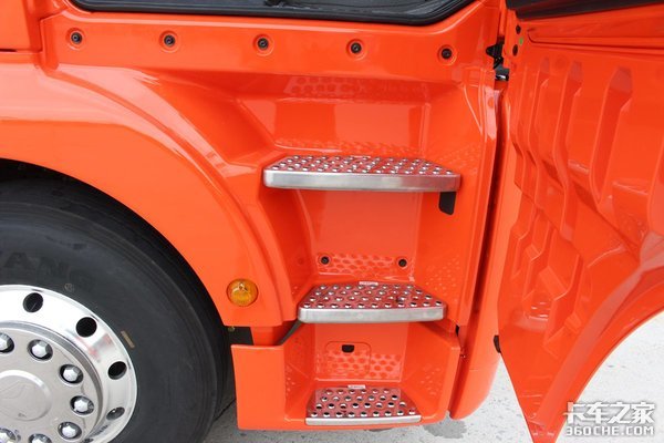 三级蹬车踏板都是金属打孔的材质,加上车轮上的踏圈设计,司乘人员上下车更轻松。