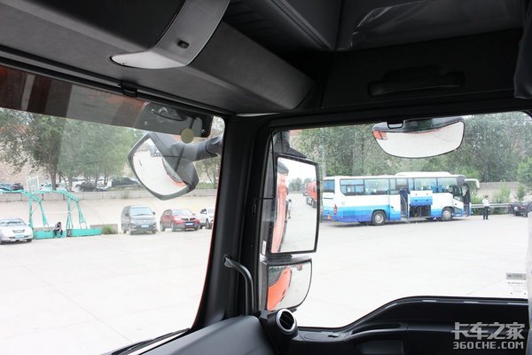 一般体积宽大的重卡的盲区也会多一些,但是汕德卡G7完全没有这个顾虑。它的副驾采用了四个组合式的“后视镜 下视镜 前照地镜”的组合,间接视野好,盲区很小。