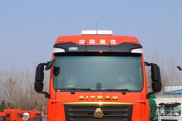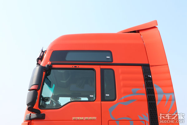 这款汕德卡采用的是C7H-H超高顶驾驶室,给人的第一感觉就是大,不过整体外观还是基本与普通版C7保持一致,颜色也是采用了汕德卡经典的橘色涂装。但是仔细看,该车前挡风玻璃尺寸明显增加了不少,这主要得益于驾驶室的增高,使得挡风玻璃面积继而加大。