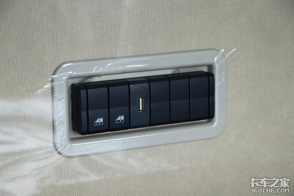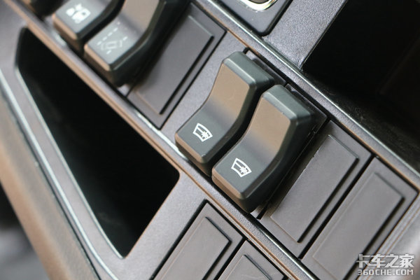 这个功能按键相信不卡友们在汕德卡上都没有见过,可以分别控制主副驾前方的电动遮阳帘。由于超高顶驾驶室高度较高,在日常使用当中不是很方便,而电动遮阳帘的加入增加了我们操作便利性,无需起身就能使用。