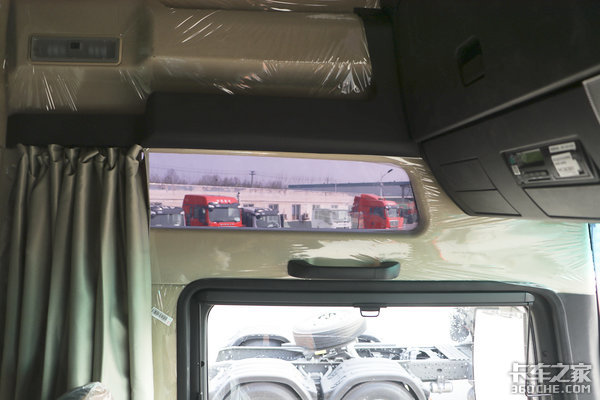 超大的前挡风玻璃保证了驾驶室充足的光线和视野,车门两侧上方增加的小侧窗进一步确保了车内良好的采光,驾驶着这辆汕德卡整个人心情都会好上不少。此外,我们可以看到小侧窗上还增加了一层镀膜处理,可以有效格挡紫外线,避免强光直射。