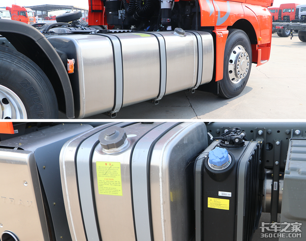 巡航里程一直都是卡友们关注的重点,奢华版采用双铝合金油箱设计,主油箱860升、副油箱240升,形成了总共1100升大容积,续航里程可以达到3000多公里,并且还配备有油箱加热功能,冬天热车比较方便。此外,如果是经常在极寒地区行车的卡友,还可以在副油箱加入低标号柴油,着车时会更加轻松。